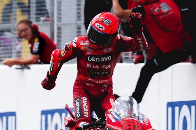 Sementara Francesco Bagnaia, rekan satu tim Marquez, mengisi podium ketiga setelah tertinggal tujuh detik dari sang juara.