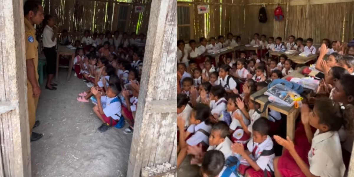 Terlihat dalam unggahan Instagram @rhmtur, pada Jumat, 27 Februari 2026, kondisi ruang kelas SD di NTT itu berdinding bambu dan lantai tanah.