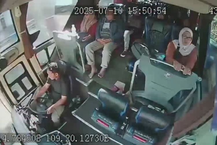Dalam video berdurasi singkat tersebut, terlihat jelas bus melaju sebelum akhirnya menghantam sesuatu di depan.
